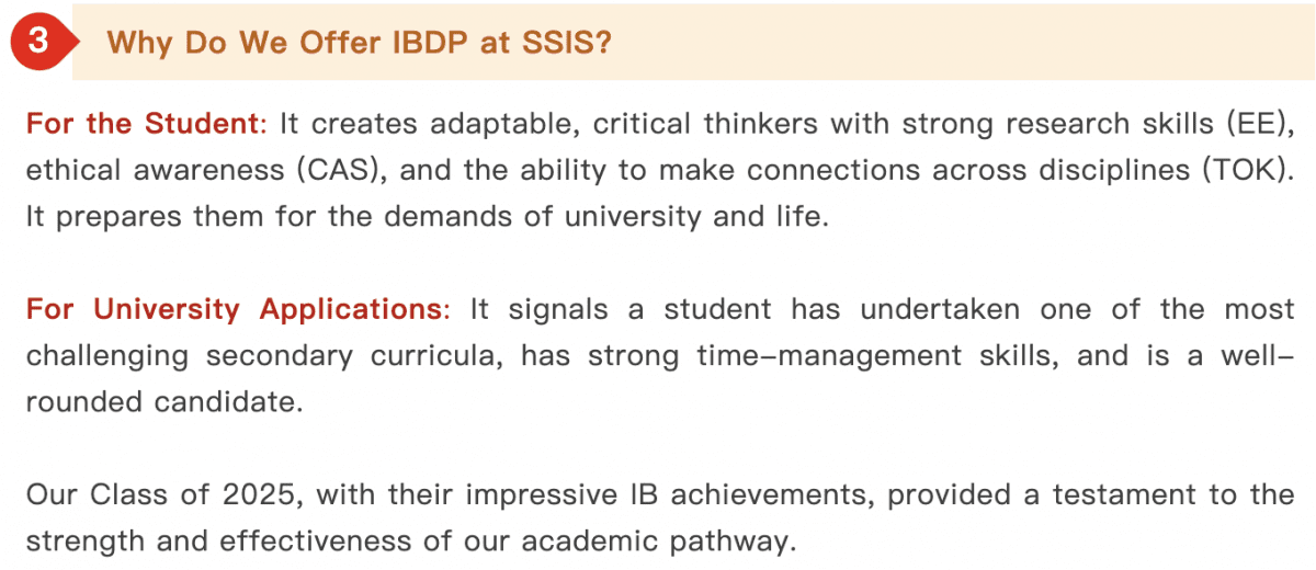 Choosing the right pathway to the world’s top universities is a pivotal decision for every family. At the Senior School of Shanghai Singapore International School (SSIS), the International Baccalaureate Diploma Programme (IBDP) represents a comprehensive educational philosophy designed to shape the leaders of tomorrow.